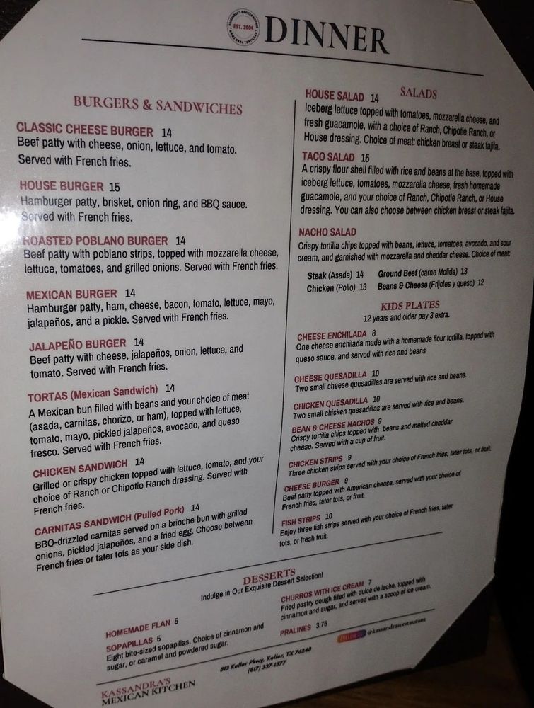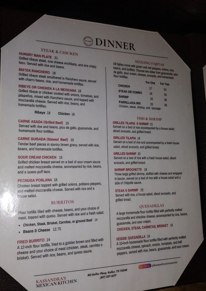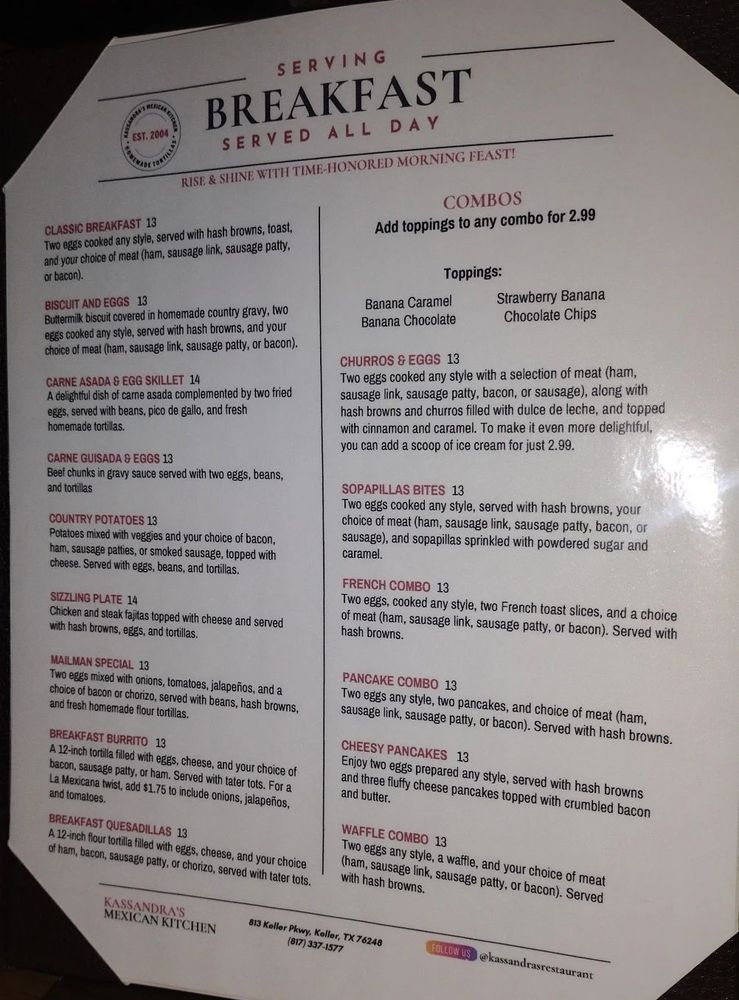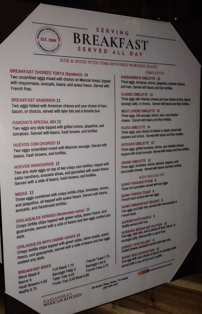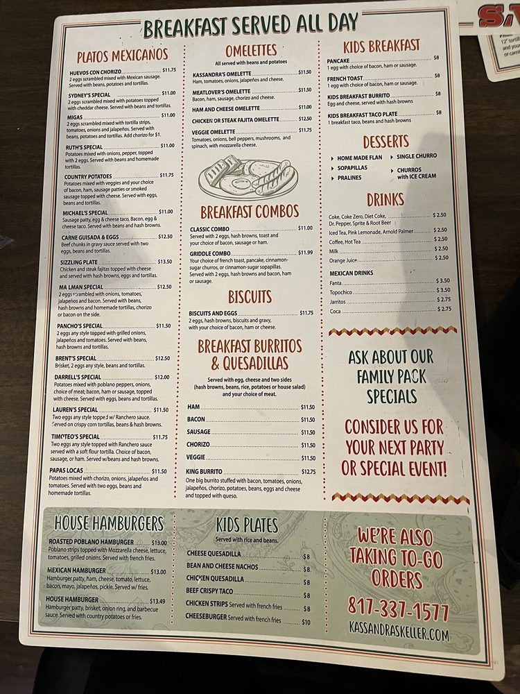 Introducing Kassandra's, a vibrant destination for taco lovers and brunch enthusiasts located at 813 Keller Pkwy, Keller, TX. This casual eatery perfectly balances delicious flavors and a welcoming atmosphere, boasting outdoor seating and a private lot for ultimate convenience.