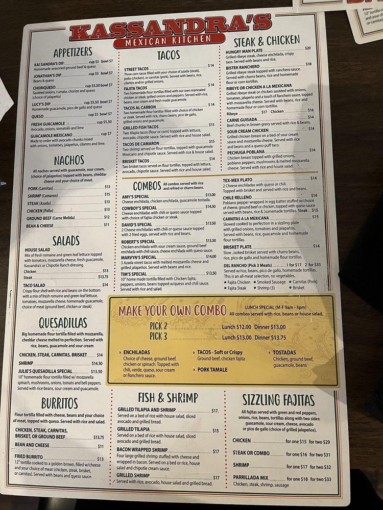 - Diverse Menu: Specializing in authentic Mexican cuisine, Kassandra's delights diners with incredible chicken tacos and savory brisket enchiladas, often dubbed the best in town.